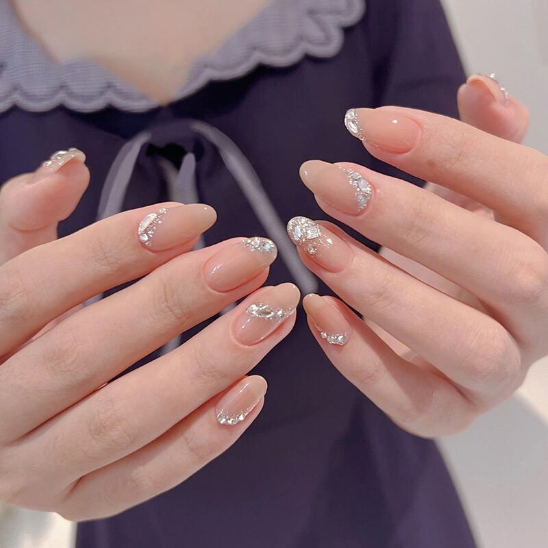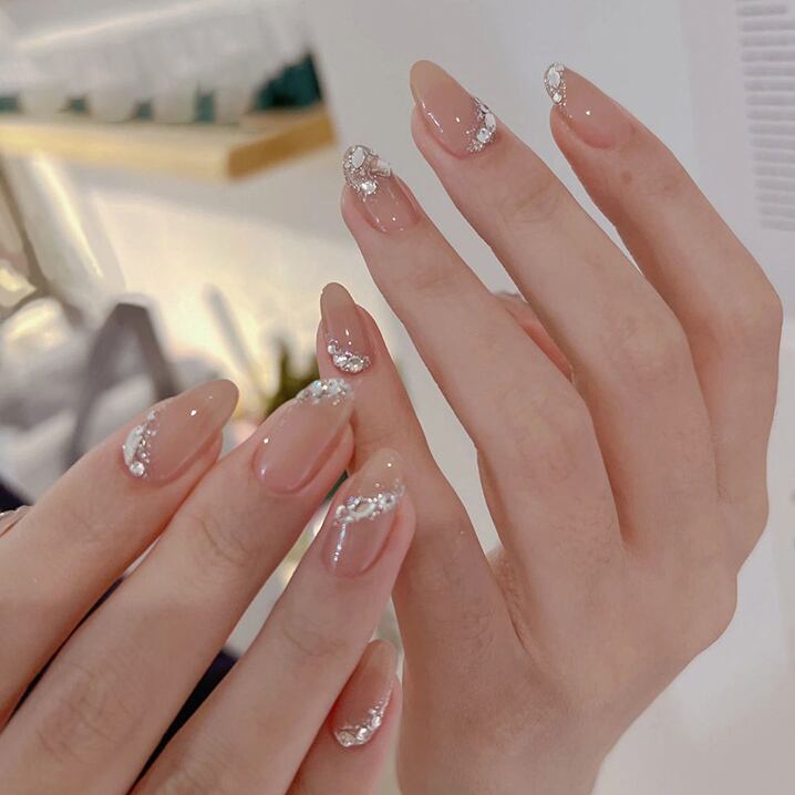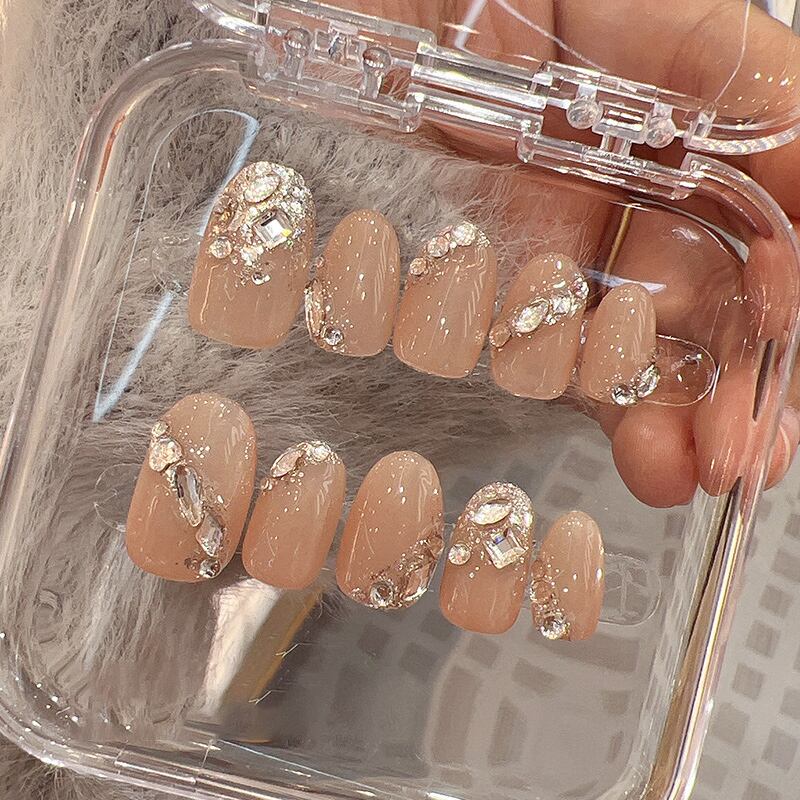 ハンドメイドショートネイルチップ 高級感あふれる小粒子系 肌を明るく見せるウェディング用つけ爪