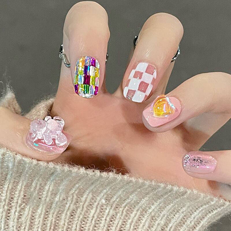 2025年新作 ショートタイプ高級ネイルチップ INS風ハンドメイド完成品つけ爪 おしゃれなガールズネイル