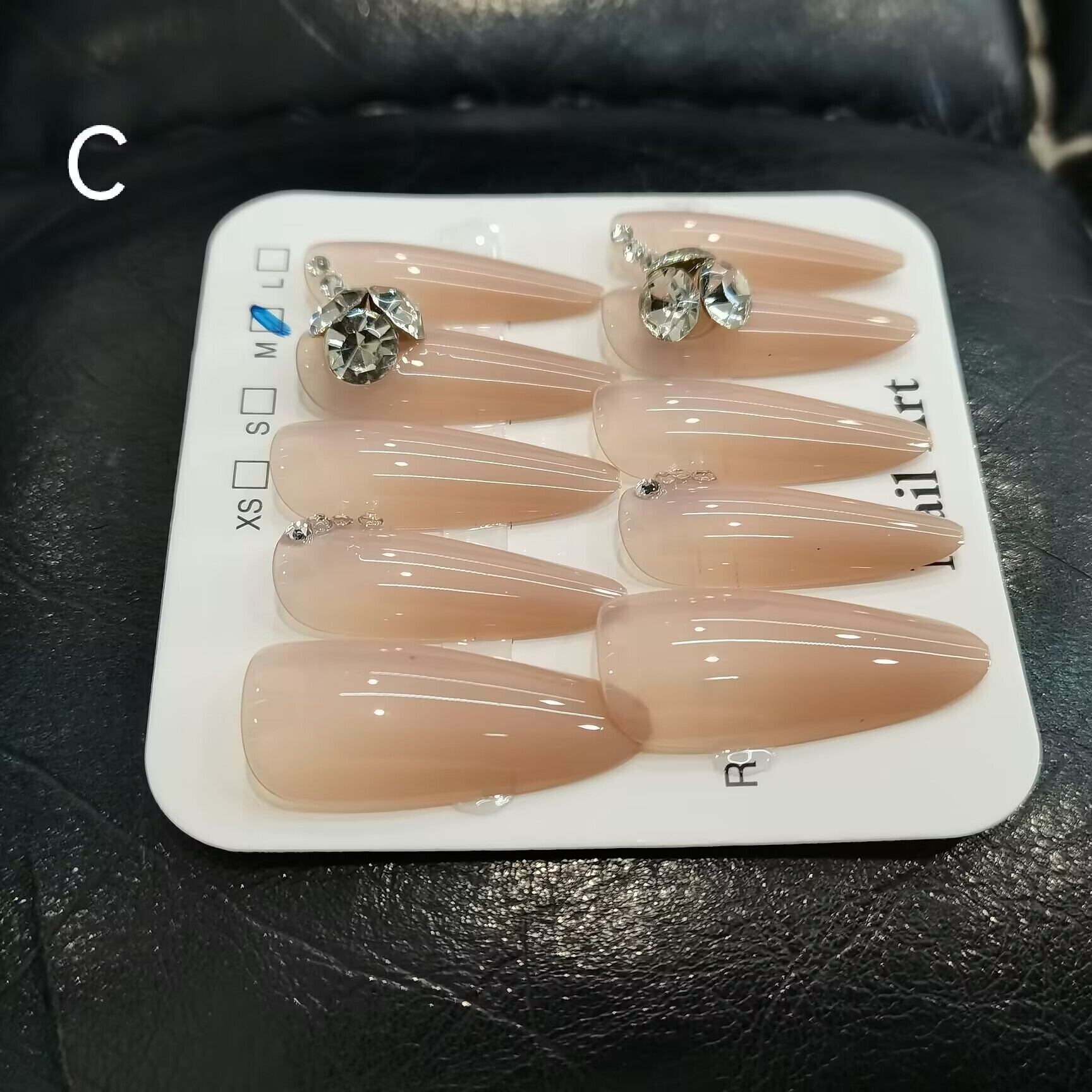 ♥在庫処分【60%OFF】ベージュピンク 付け爪 ロング ダイヤ モード 大人女子 おしゃれ シンプルネイル 通勤OK