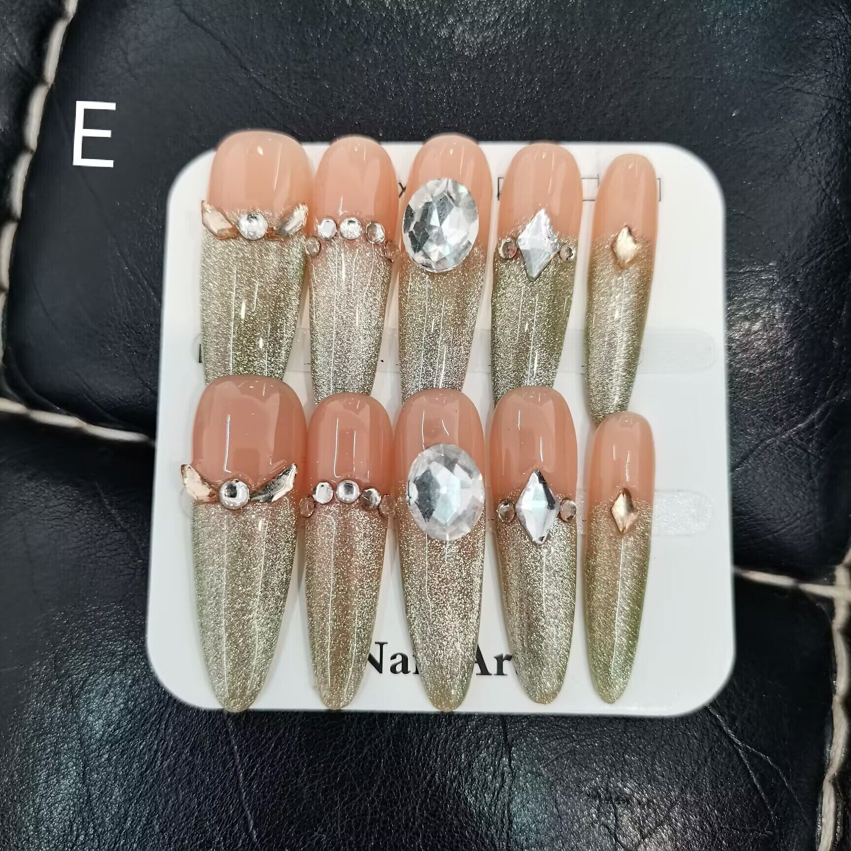 ♥在庫処分【60%OFF】 高級感 ダイヤ風ストーン付きロングネイルチップ|大人上品・細ラメ・つけ爪・グラマラスネイル